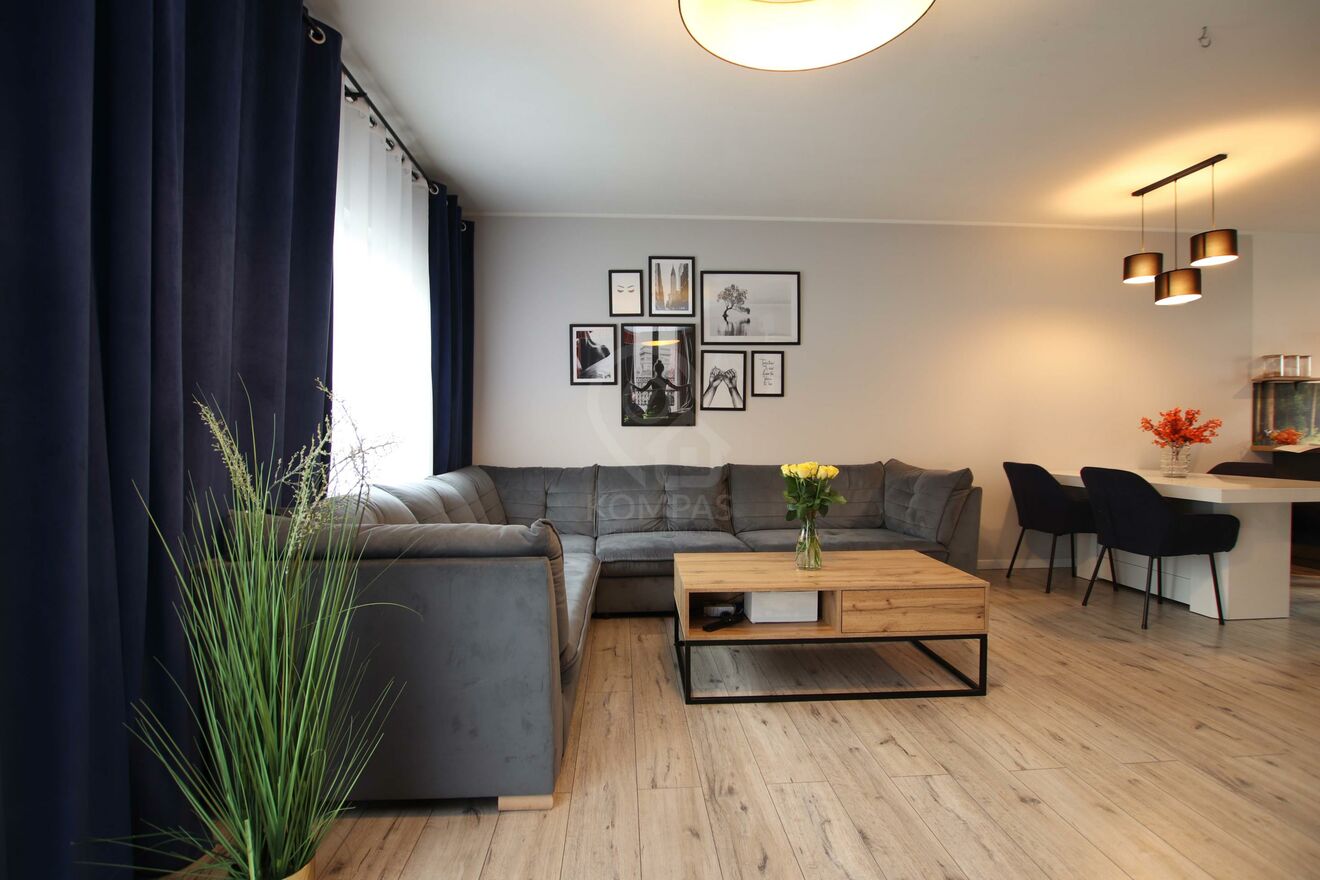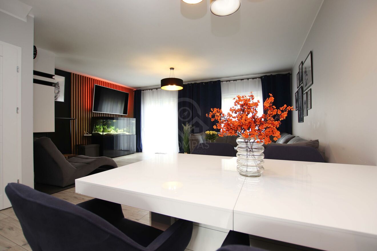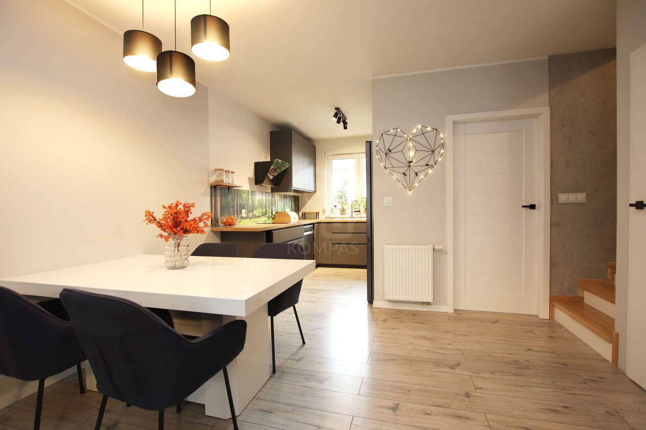 Firma Kompas nieruchomości prezentuje Państwu na sprzedaż nowoczesny dom w zabudowie szeregowej z 2021 roku wybudowany na kameralnym Osiedlu Wiśniowe Wzgórze w Wilkszynie. Dom położony jest na działce o powierzchni 140 m2. Posiada własny podjazd z przodu oraz ogródek z tyłu domu z widokiem na zieleń i las. Nieruchomość rozłożona jest na 3 kondygnacjach: parter, piętro i poddasze. Wykonana jest z wysokiej jakości materiałów i urządzona w bardzo gustownym stylu.Dom sprzedawany jest z całym wyposażeniem.
